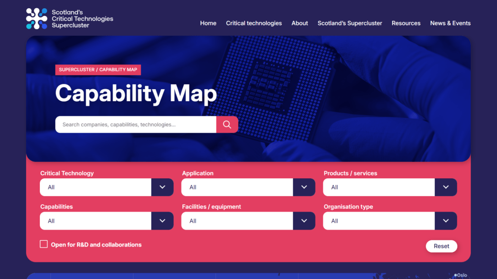 In addition to the capability map, the new website provides a home for Scotland’s critical technologies ecosystem, while a supporting hero video introduces the supercluster and its purpose.